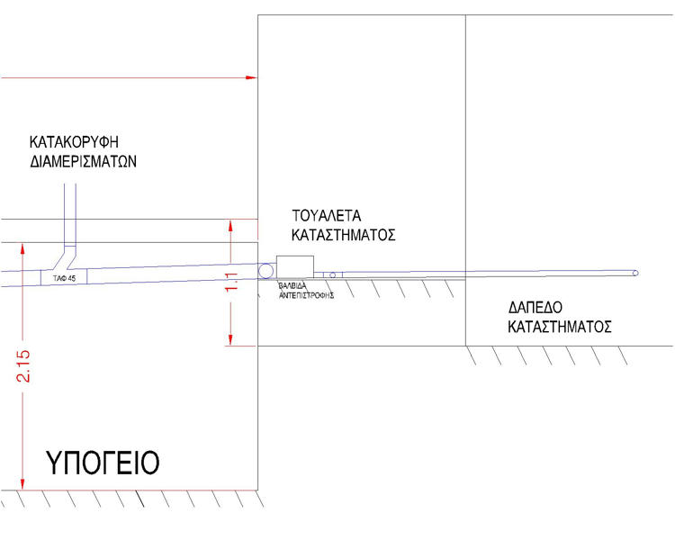 2. Με αντεπιστροφη βαλβιδα πριν την τηγν ενωση τουαλετων αποχετευσης-κεντρικης οριζοντιασς.
