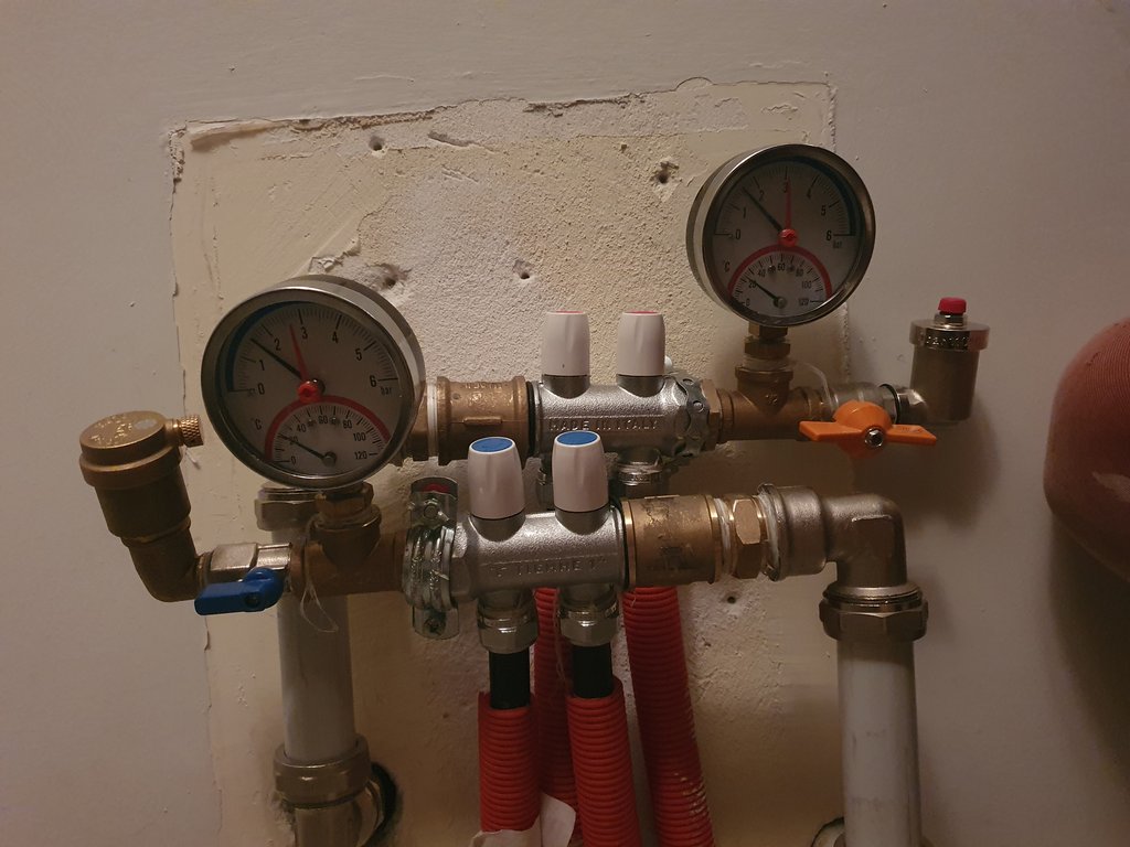 Εγκατάσταση monoblock αντλίας σε μικρό διαμέρισμα με μονοσωλήνιο σύστημα και 4 σώματα πάνελ. 2 γραμμές τουμπόραμα φ18 ενδοδαπέδια με 2 σώματα η κάθε μία, όπως φαίνεται στον συλλέκτη της φωτογραφίας. Η αντλία τοποθετήθηκε στο ισόγειο και συνδέεται με τον συλλέκτη με φ32 πολυστρωματική μήκους περίπου 6 μέτρα προσαγωγή και 6 μέτρα επιστροφή. Στο άναμα της αντλίας βγάζει σφάλμα στην ροή του νερού (HP water switch). Πιστεύετε ότι μπορεί το κύκλωμά μου να είναι αρκετά μικρό και να μην καλύπτει το min flow rate? Εξαέρωση έγινε και στα σώματα και εσωτερικά στην αντλία.